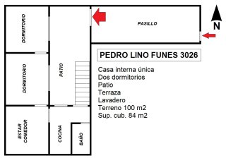VENTA, CASA INERNA UNICA DE 2 DORMITORIOS CON UN BAÑO AMPLIO. EL PATIO DA VENTILACION Y LUMINOSIDAD A LOS AMBIENTES. LA TERRAZA DEJA UN BUEN LUGAR PARA APROVECHAR CON POSIBILIDAD DE AMPLIAR LOS METROS CONSTRUIDOS. SERVICOS DE GAS NATURAL Y CLOACAS - INERNA UNICA - 2 DORMITORIOS - BAÑO - COMEDOR - COCINA - LAVADERO - TERRAZA - GAS NATURAL - VALOR DE VENTA U$S 39.000